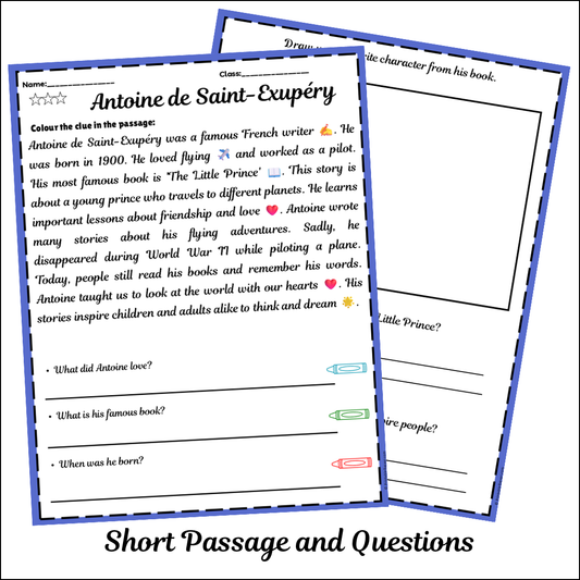 Antoine de Saint-Exupéry | Short Reading Comprehension Creative Worksheet