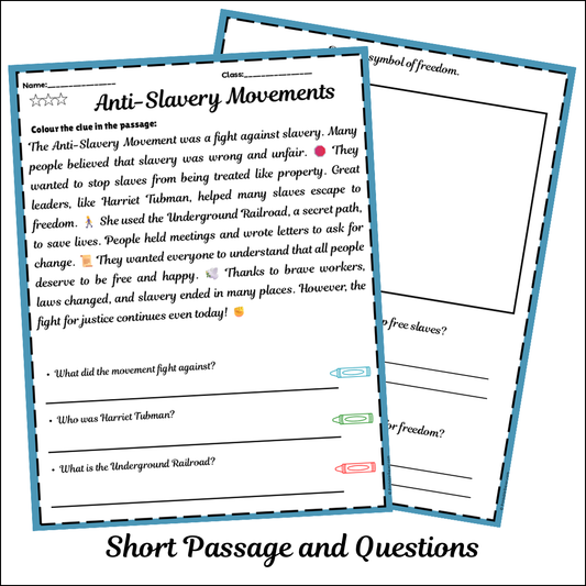 Anti-Slavery Movements | Short Reading Comprehension Creative Worksheet