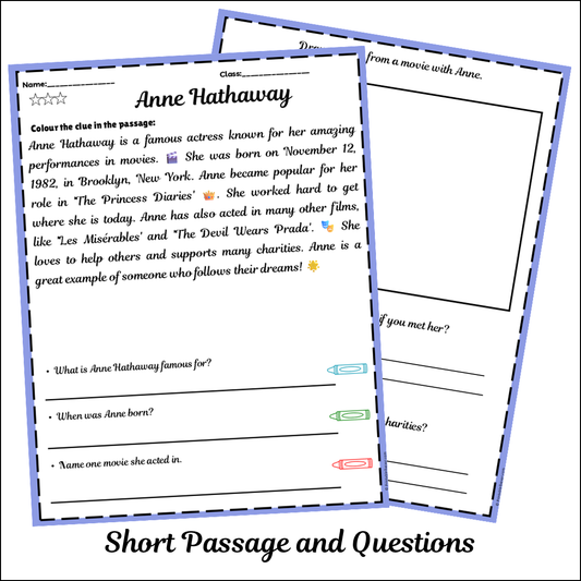Anne Hathaway | Short Reading Comprehension Creative Worksheet