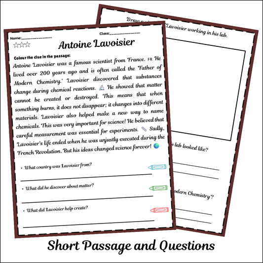 Antoine Lavoisier | Short Reading Comprehension Creative Worksheet