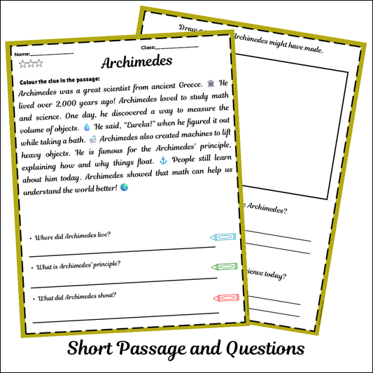 Archimedes | Short Reading Comprehension Creative Worksheet