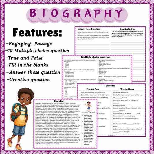 Usain Bolt | Biography Reading Comprehension and Questions Worksheet