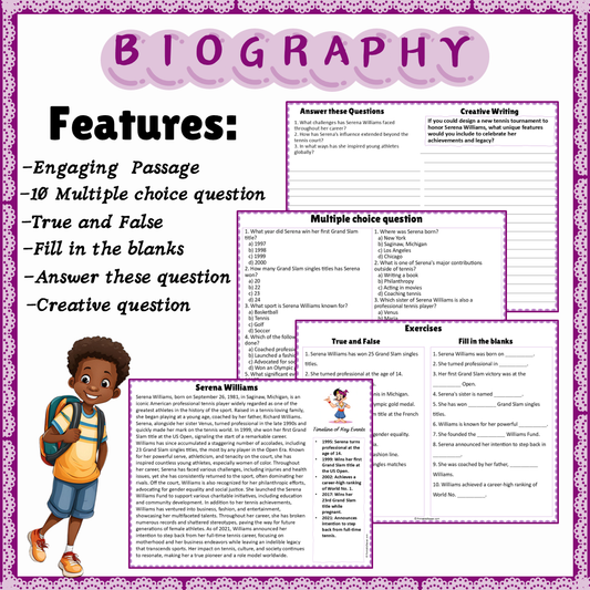Serena Williams | Biography Reading Comprehension and Questions Worksheet