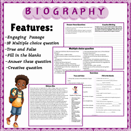 Shinzo Abe | Biography Reading Comprehension and Questions Worksheet