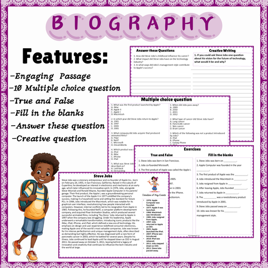Steve Jobs | Biography Reading Comprehension and Questions Worksheet
