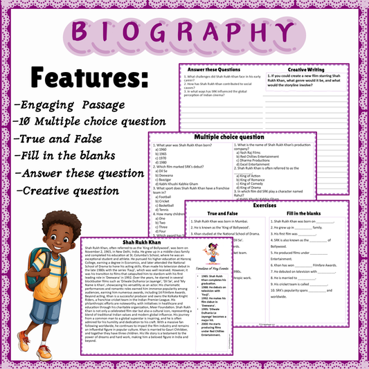 Shah Rukh Khan | Biography Reading Comprehension and Questions Worksheet