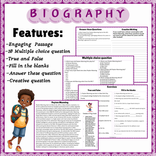 Peyton Manning | Biography Reading Comprehension and Questions Worksheet