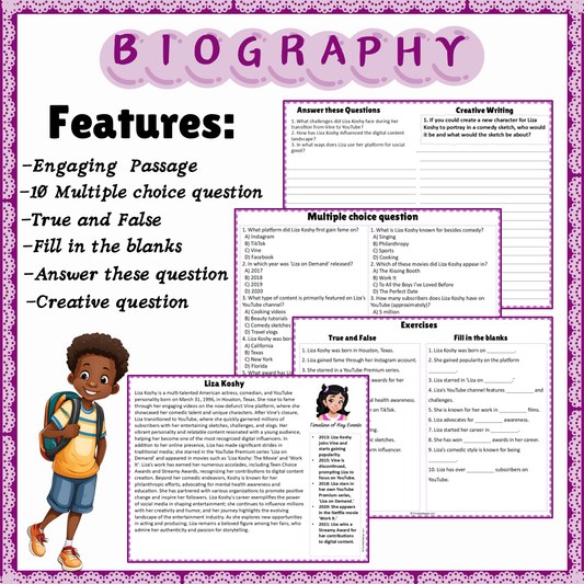 Liza Koshy | Biography Reading Comprehension and Questions Worksheet