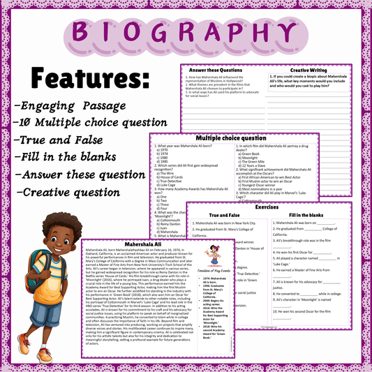 Mahershala Ali | Biography Reading Comprehension and Questions Worksheet