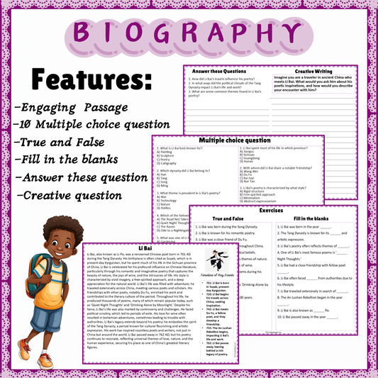 Li Bai | Biography Reading Comprehension and Questions Worksheet