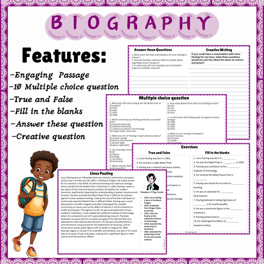 Linus Pauling | Biography Reading Comprehension and Questions Worksheet