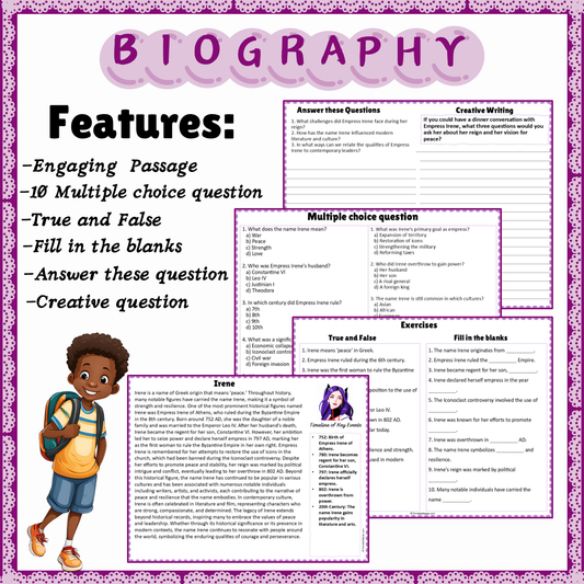 Irene | Biography Reading Comprehension and Questions Worksheet