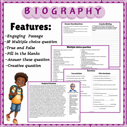 Jacques Cousteau | Biography Reading Comprehension and Questions Worksheet