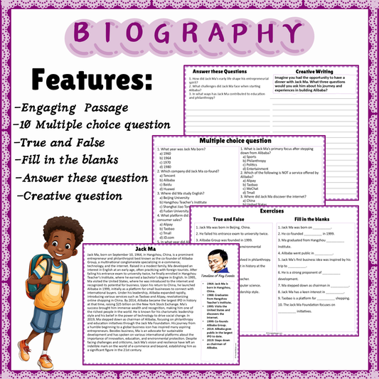 Jack Ma | Biography Reading Comprehension and Questions Worksheet