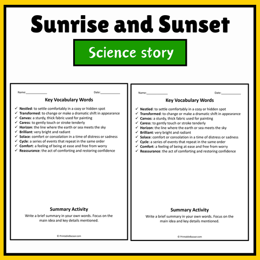 Sunrise and Sunset | Science Story Reading Comprehension Activity