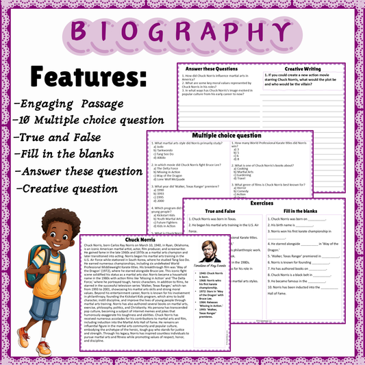 Chuck Norris | Biography Reading Comprehension and Questions Worksheet