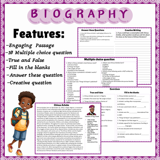 Chinua Achebe | Biography Reading Comprehension and Questions Worksheet
