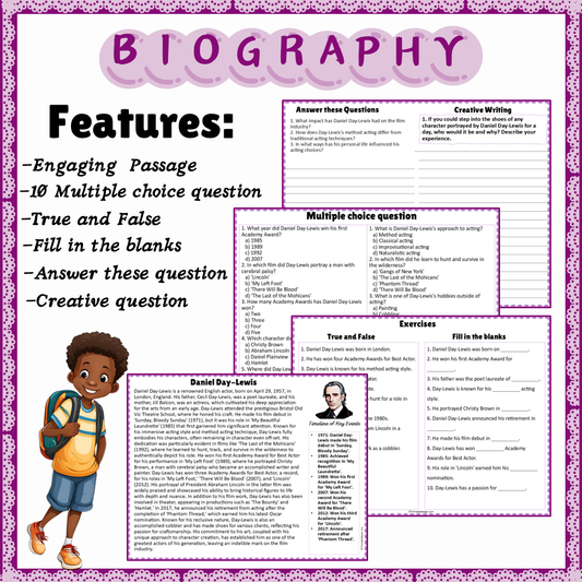 Daniel Day-Lewis | Biography Reading Comprehension and Questions Worksheet