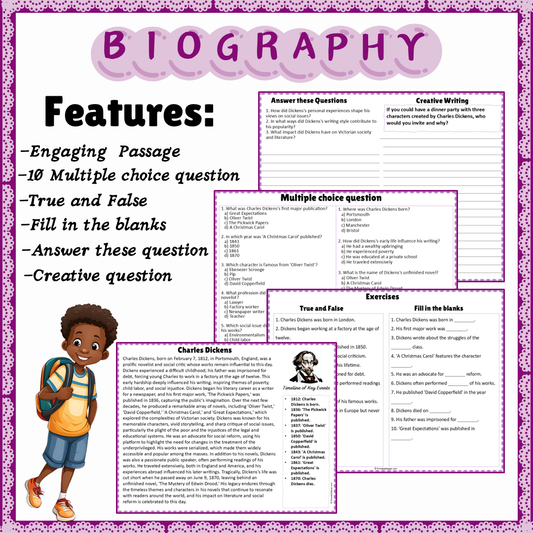 Charles Dickens | Biography Reading Comprehension and Questions Worksheet