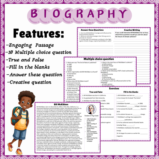 Bill McKibben | Biography Reading Comprehension and Questions Worksheet