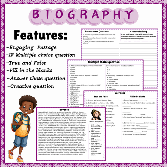 Beyonce | Biography Reading Comprehension and Questions Worksheet