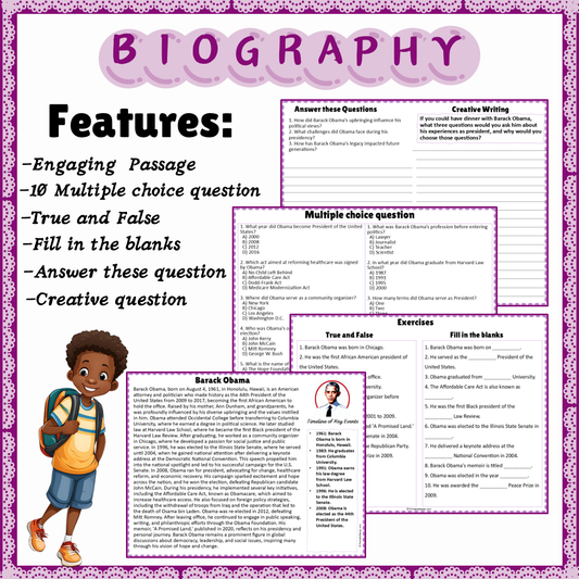 Barack Obama | Biography Reading Comprehension and Questions Worksheet