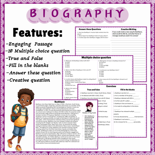 Baekhyun | Biography Reading Comprehension and Questions Worksheet