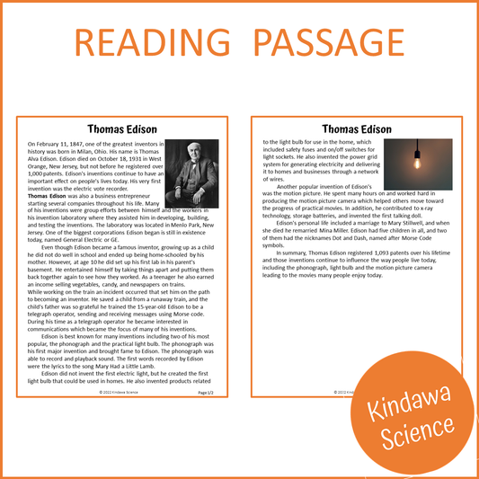Thomas Edison Reading Comprehension Passage and Questions | Printable PDF