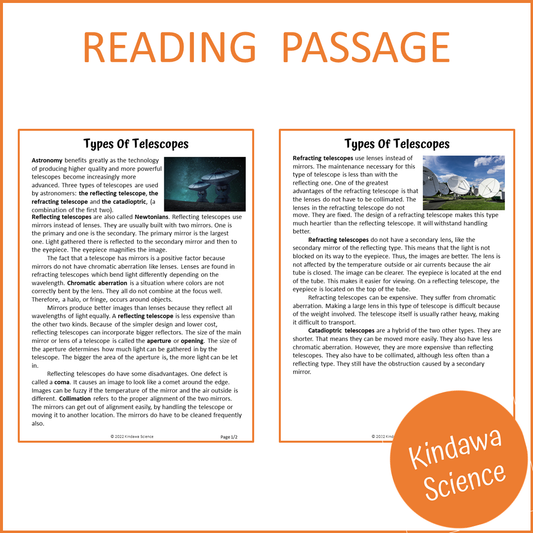 Types Of Telescopes Reading Comprehension Passage and Questions | Printable PDF