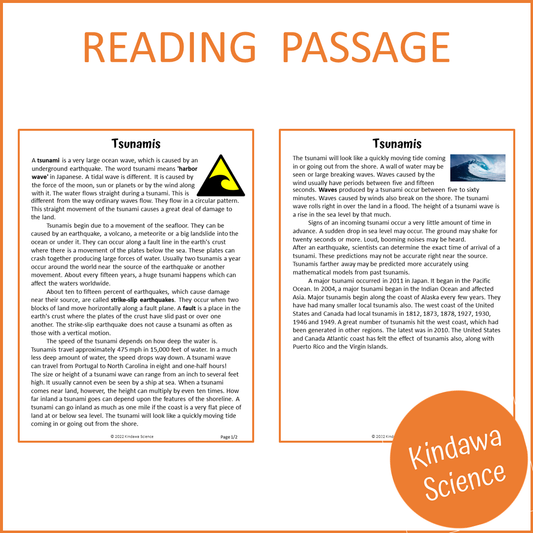 Tsunamis Reading Comprehension Passage and Questions | Printable PDF