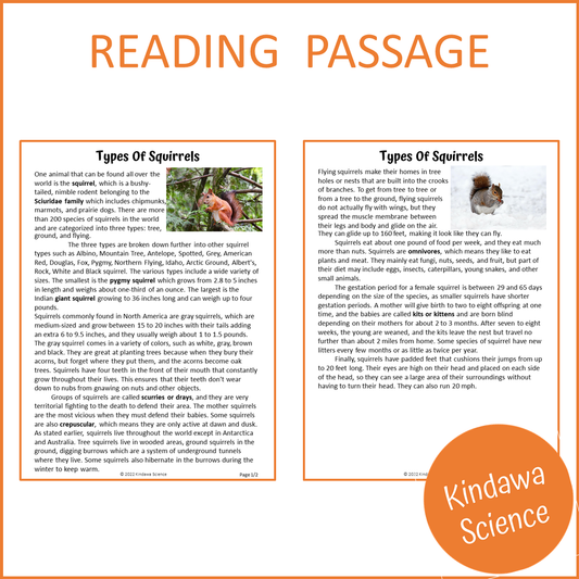 Types Of Squirrels Reading Comprehension Passage and Questions | Printable PDF
