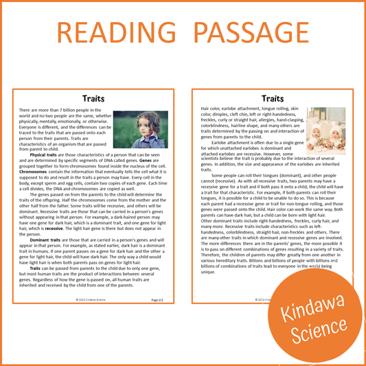Traits Reading Comprehension Passage and Questions | Printable PDF