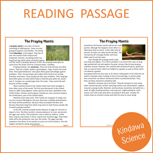 The Praying Mantis Reading Comprehension Passage and Questions | Printable PDF