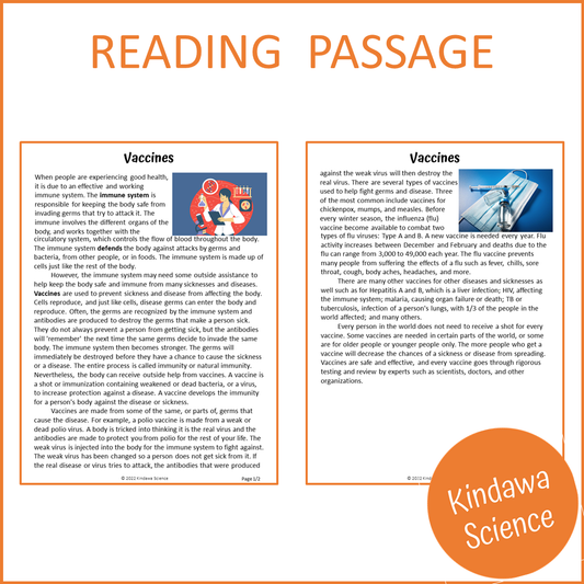Vaccines Reading Comprehension Passage and Questions | Printable PDF