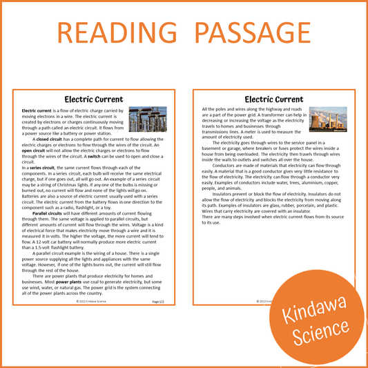 Electric Current Reading Comprehension Passage and Questions | Printable PDF