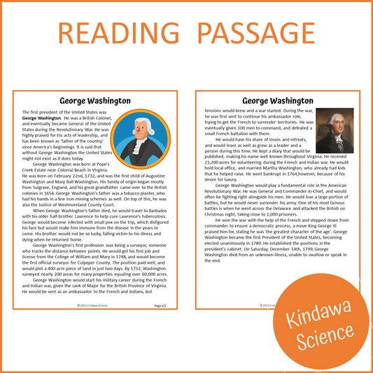 George Washington Reading Comprehension Passage and Questions | Printable PDF