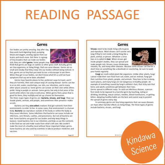Germs Reading Comprehension Passage and Questions | Printable PDF