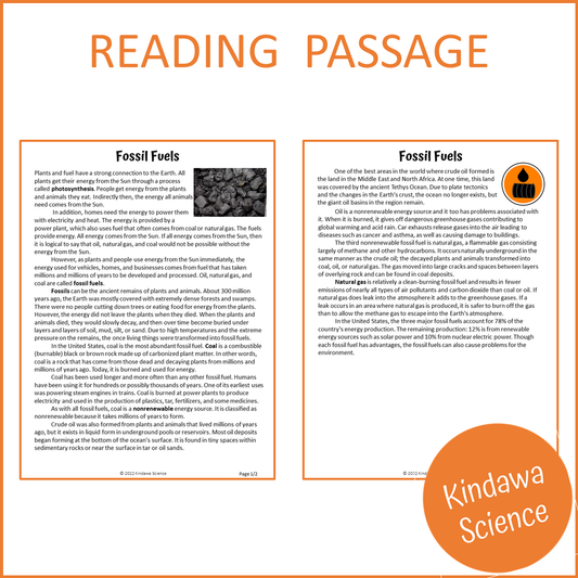 Fossil Fuels Reading Comprehension Passage and Questions | Printable PDF