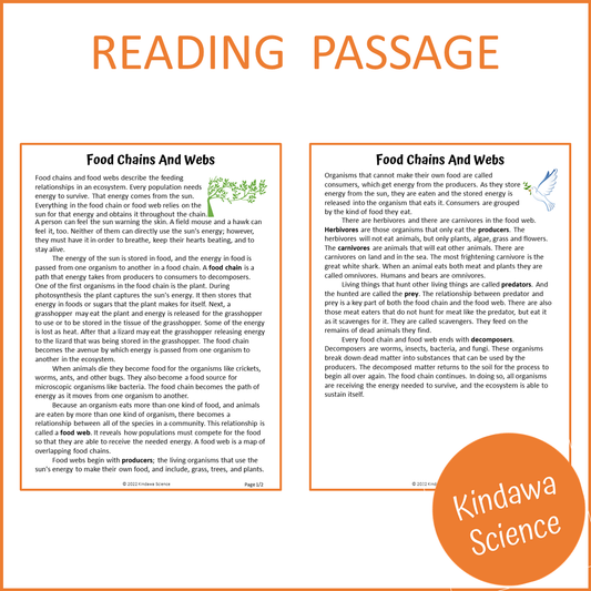 Food Chains And Webs Reading Comprehension Passage and Questions | Printable PDF