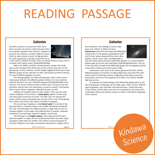 Galaxies Reading Comprehension Passage and Questions | Printable PDF