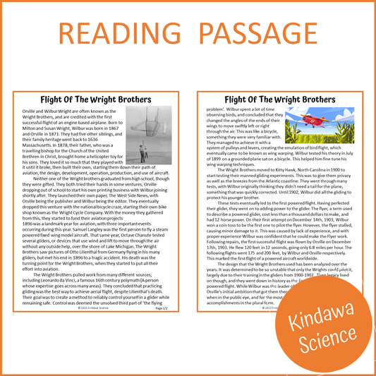 Flight Of The Wright Brothers Reading Comprehension Passage and Questions | Printable PDF