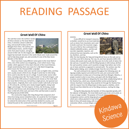 Great Wall Of China Reading Comprehension Passage and Questions | Printable PDF