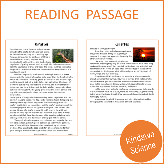 Giraffes Reading Comprehension Passage and Questions | Printable PDF