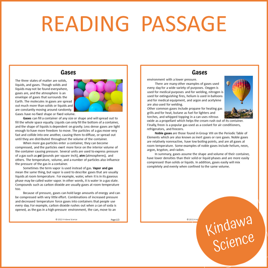 Gases Reading Comprehension Passage and Questions | Printable PDF