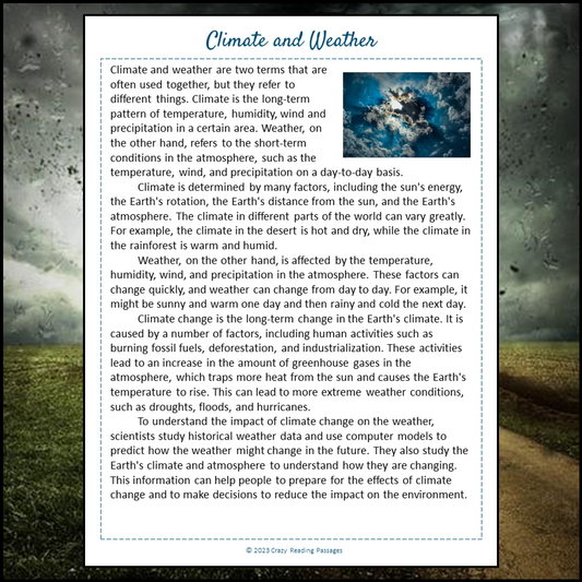 Climate And Weather Reading Comprehension Passage and Questions | Printable PDF