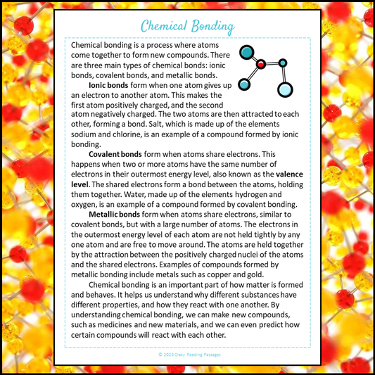Chemical Bonding Reading Comprehension Passage and Questions | Printable PDF