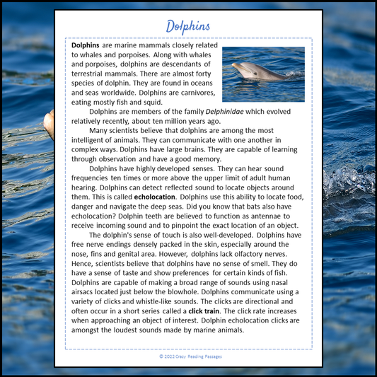 Dolphins Reading Comprehension Passage and Questions | Printable PDF