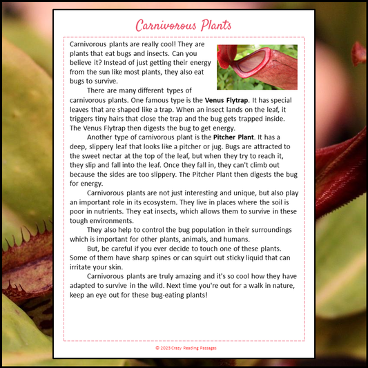 Carnivorous Plants Reading Comprehension Passage and Questions | Printable PDF