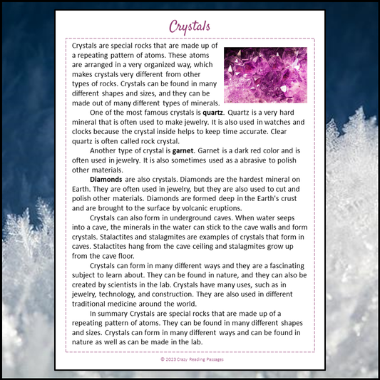 Crystals Reading Comprehension Passage and Questions | Printable PDF