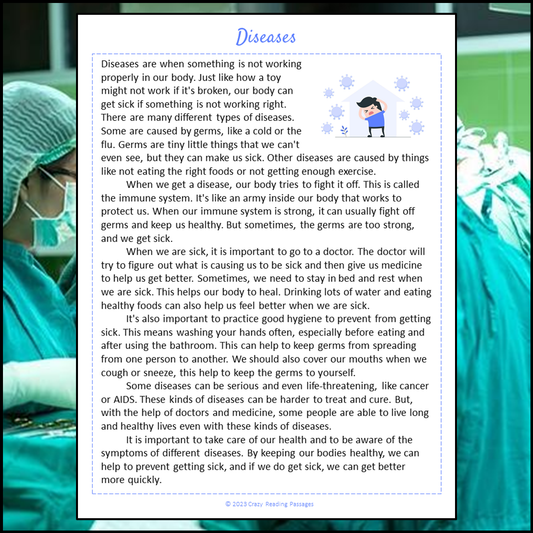 Diseases Reading Comprehension Passage and Questions | Printable PDF